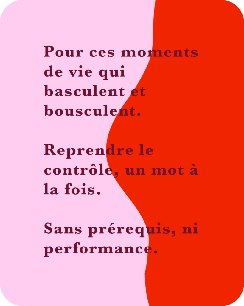 L’écriture est proposée comme un lieu pour déposer ce qui pèse, traverser ce qui bouleverse, transformer ce qui fait mal.